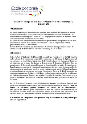 Les demandes de réinscription en doctorat se dérouleront du 1er au 15 juin 2026. Parmi les pièces justificatives à fournir dans votre dossier, il y aura le compte rendu d'entretien avec les membres de votre Comité de Suivi Individuel (CSI).