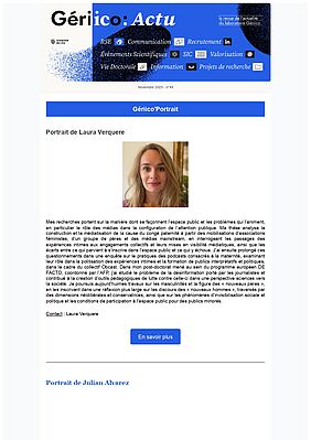 Résumé : Voici le quarante-huitième numéro de la newsletter du laboratoire : Gériico'Actu ! Dans cette revue d'actualité, vous retrouverez toutes les actualités du laboratoire Gériico.