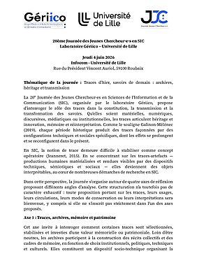 Journée Jeunes Chercheur.e.s en SIC - Gériico - 20ème édition