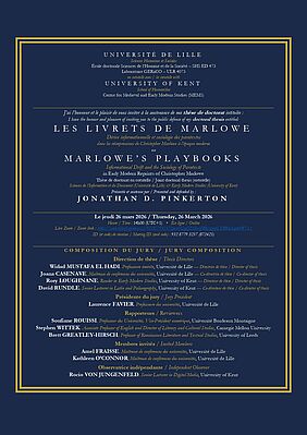 GERiiCO Soutenance de thèse Doctorants ActualitésTitre : Marlowe's Playbooks / Les livres de Marlowe