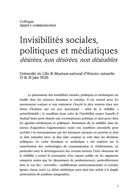 Appel à communication - Invisibilités sociales, politiques et médiatiques
